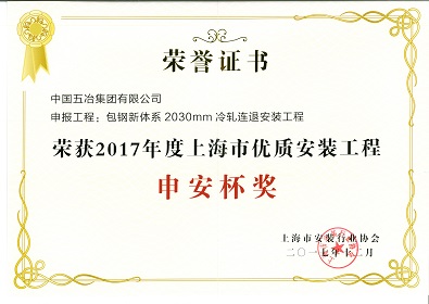 包钢新体系2030mm冷轧连退安装工程-2017年度上海市优质安装工程申安杯奖